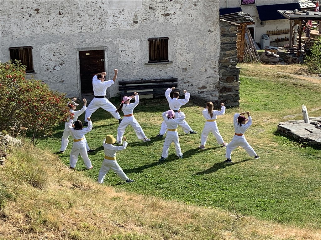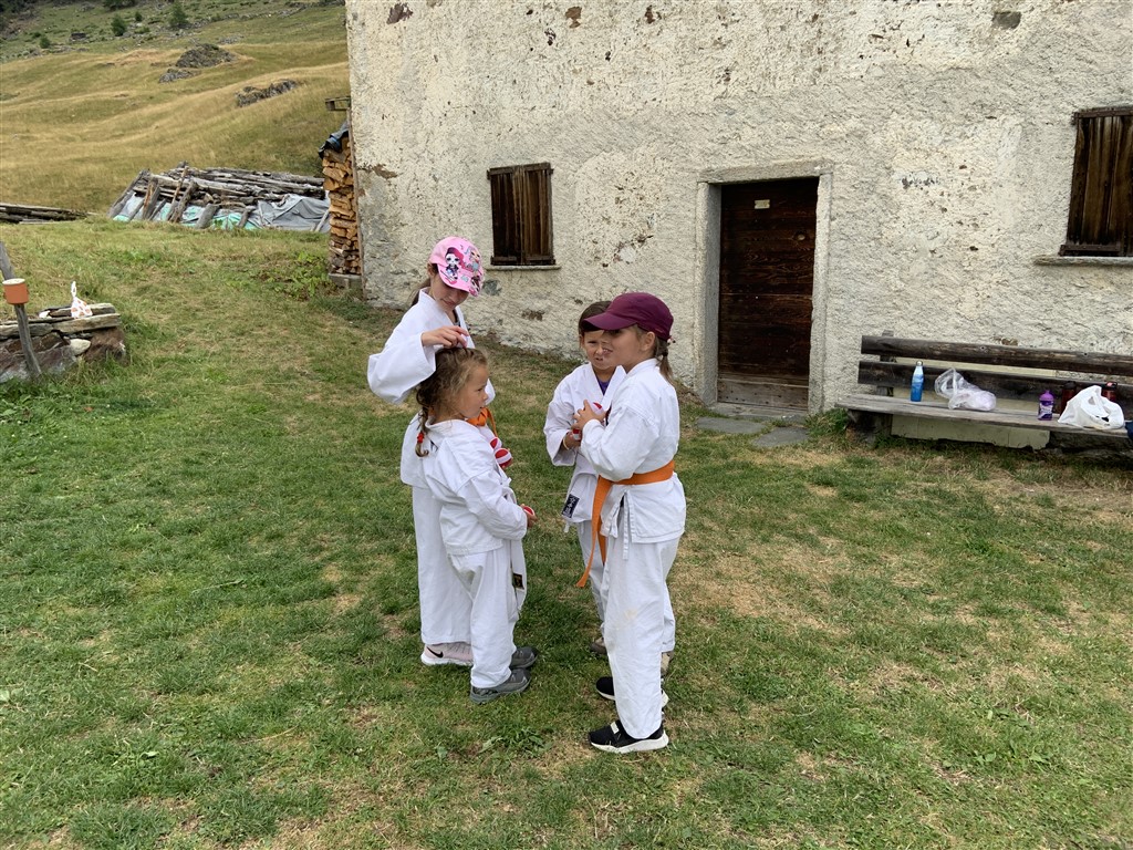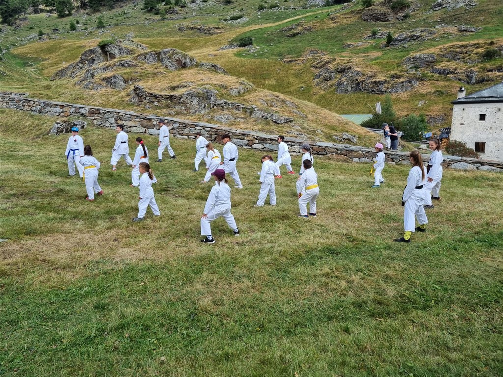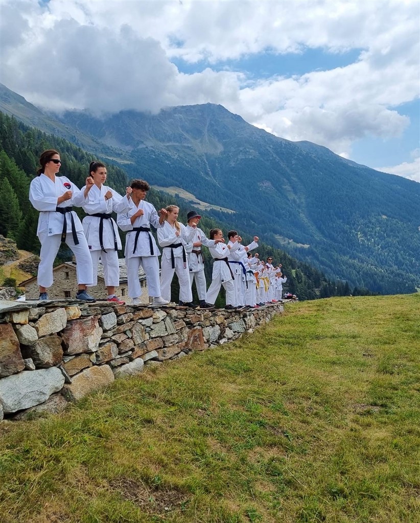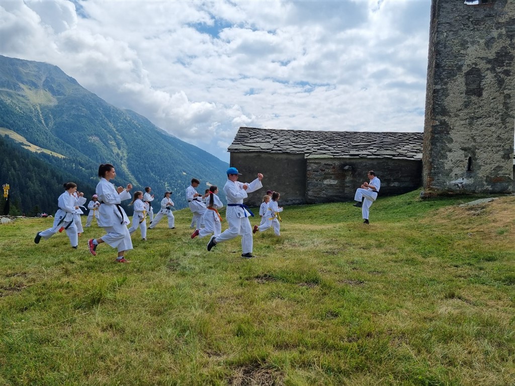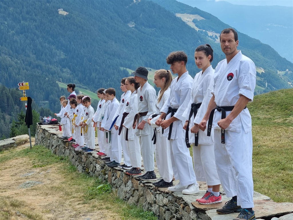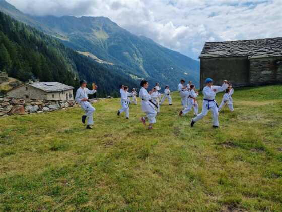 Ragazzi e adulti si sono allenati con serietà e passione godendo di una palestra naturale che ha offerto uno spettacolo fantastico circondarto dalle splendide montagne della valle. Un grazie particolare va a tutto il team del Ristoro San Romerio che ci ha ospitato e trattato molto bene. Grazie anche a tutti i karateka per l’ottima collaborazione e impegno, è stato bello condividere con voi questi tre giorni.