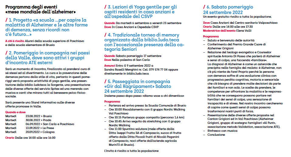 Mese mondiale dell’alzheimer – il programma in Valposchiavo