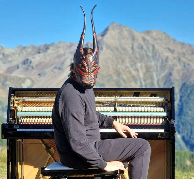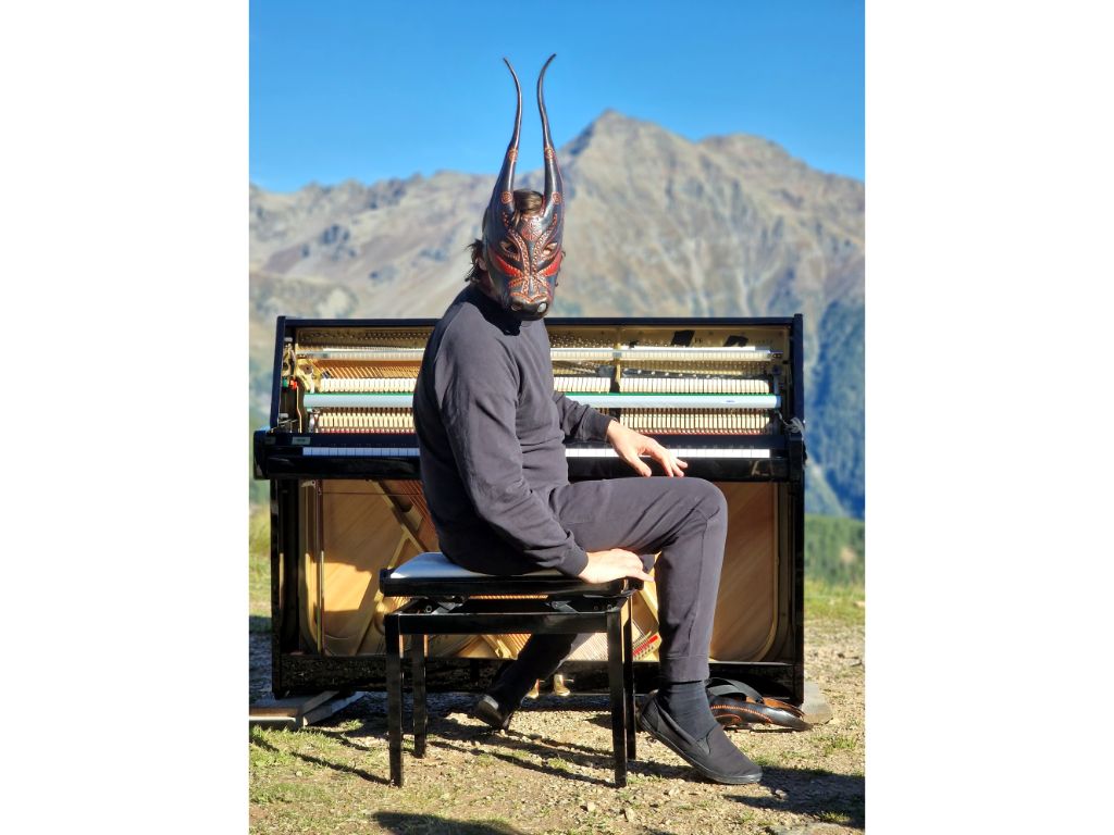 Mi aveva incuriosito la location, mi aveva incuriosito la presentazione sui media del pianista con la maschera, che non toglie mai, neppure durante le interviste. Un concerto di pianoforte all’aperto, ai duemilacento metri di Alp Grüm. Per interesse, ma anche per premiare la simpatica gestione del locale alpino, ho deciso di andarci.
