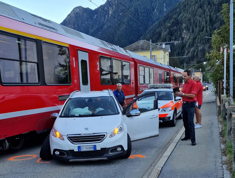 Oggi pomeriggio, poco dopo le ore 17.00, appena più a nord della chiesa nei pressi dell’abitato di Le Prese, si è verificato l’ennesimo incidente tra un treno della Ferrovia Retica e un’auto. Il convoglio ferroviario, che viaggiava da nord a sud, è entrato in collisione con la macchina che stava, invece, proseguendo nella direzione opposta.