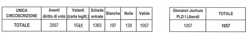 Per quanto riguarda il Podestà, si registra la rielezione dell’unico candidato, Giovanni Jochum