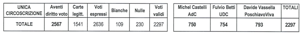 Riceviamo gli esiti delle votazioni inerenti l’elezione del Podestà e del Consiglio comunale a Poschiavo.