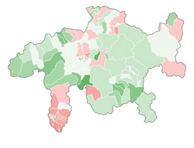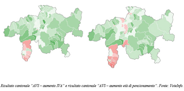 In questa riforma si può vedere bene la differenza tra i cantoni della Svizzera tedesca e quelli della Svizzera francese. Nella Svizzera francese, quasi tutti i Cantoni hanno rifiutato questa riforma, mentre nella Svizzera tedesca l’hanno accettata quasi tutti. Il Ticino ha invece accettato l’aumento dell’IVA, respingendo però l’aumento dell’età di pensionamento delle donne. Nei Grigioni, invece, quasi tutti i comuni, meno alcuni comuni in Mesolcina e nella Val Calanca, hanno accettato la riforma. In totale, nel Cantone dei Grigioni l’aumento dell’IVA è stato accettato con il 58.54% (Poschiavo: 62.69% e Brusio: 54.14%) e l’aumento dell’età di pensionamento delle donne con il 56.19% (Poschiavo: 59.16% e Brusio: 50.56%).