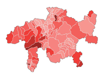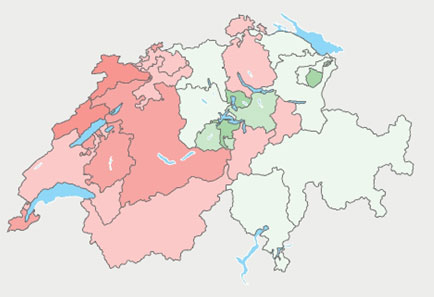 Come visibile nell’immagine non ci sono grandi differenze regionali. Come si può vedere, nel Cantone dei Grigioni questa iniziativa è stata respinta chiaramente con il 65.23%; nessun Comune ha accettato questa iniziativa. Il risultato ha sicuramente a che vedere con il fatto che siamo un Cantone dove l’agricoltura e l’allevamento giocano un ruolo importante. Anche in Valle l’iniziativa non ha trovato supporto, sebbene in Valposchiavo ci siano praticamente solo delle aziende agricole biologiche; però, questo sembra non aver influenzato il voto. Poschiavo ha respinto chiaramente con il 78.99% e Brusio con l’80.18%.