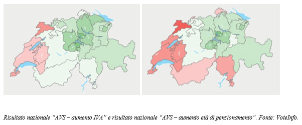 La riforma è passata di poco perché l’aumento dell’età di pensionamento delle donne è stato accettato con solo il 50.57%, mentre l’aumento dell’aliquota dell’IVA è stata accettata con il 55.07%. Inoltre, 18 Cantoni su 23 hanno accettato l’aumento dell’aliquota dell’IVA.