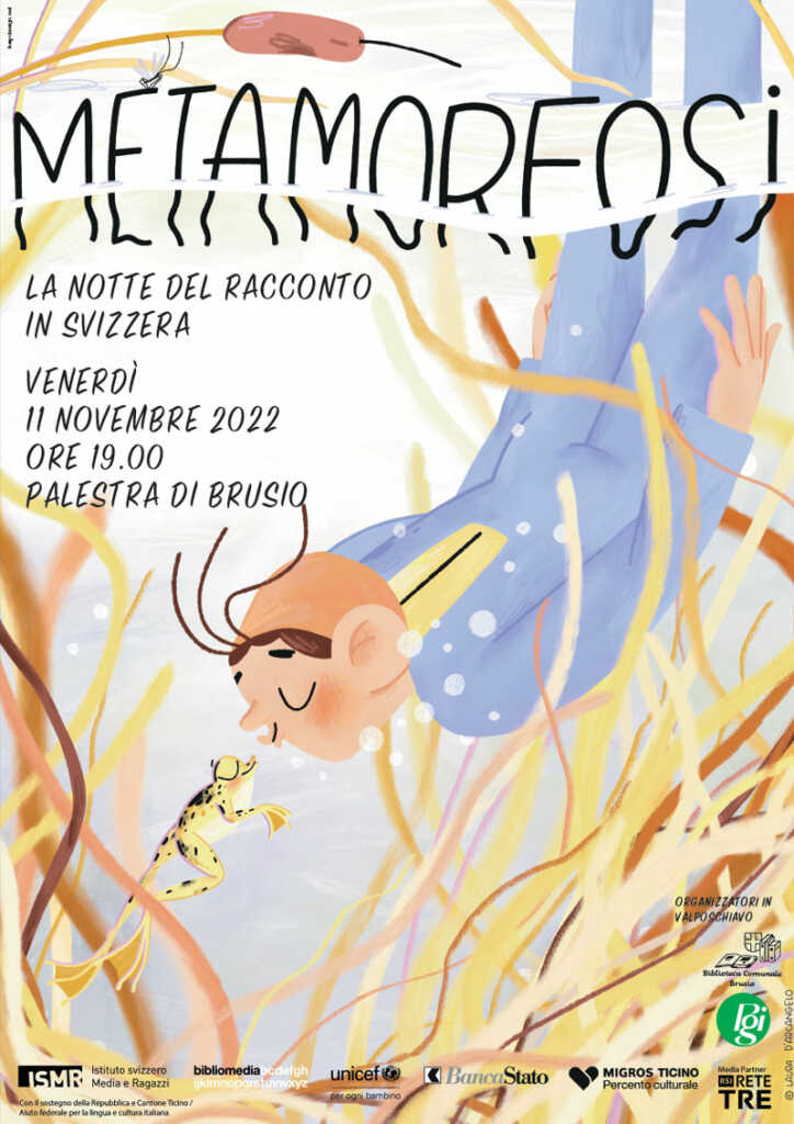La Notte del racconto, edizione 2022, affronta attraverso la lettura e le storie raccontate tramite letture e brevi scenette, la “metamorfosi, ”il tema del cambiamento, un processo complesso e affascinante che inizia dal concepimento fino all’ultimo giorno di vita. L’appuntamento in Valposchiavo è per venerdì 11 novembre 2022, dalle ore 19, presso la palestra di Brusio.
