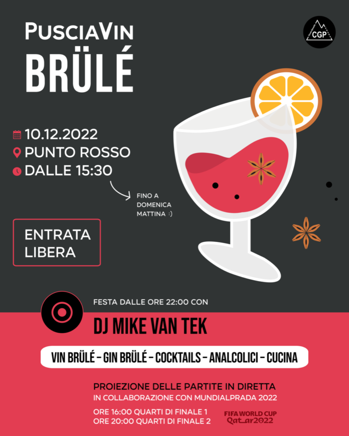 Sabato 10 dicembre 2022 si terrà presso il Punto Rosso a Poschiavo una nuova festa organizzata dal Circolo Giovanile Prada.