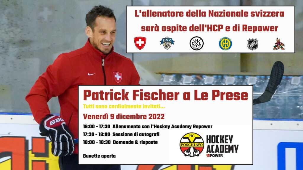 L’HCP annuncia l’appuntamento di venerdì 9 dicembre, quando nel tardo pomeriggio Patrick Fischer, l’attuale allenatore della Nazionale Svizzera di hockey, sarà ospite presso la pista di Le Prese. Un’occasione unica per incontrare e conoscere uno dei personaggi più carismatici dell’hockey rossocrociato. Sono tutti cordialmente invitati, dai più piccoli ai più grandi.