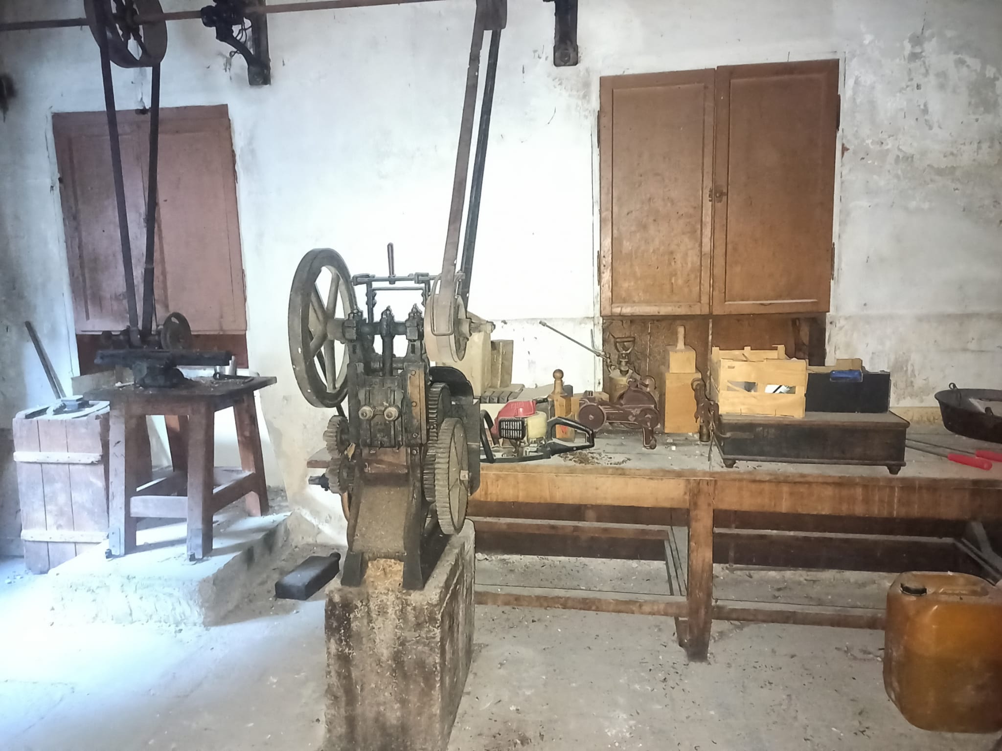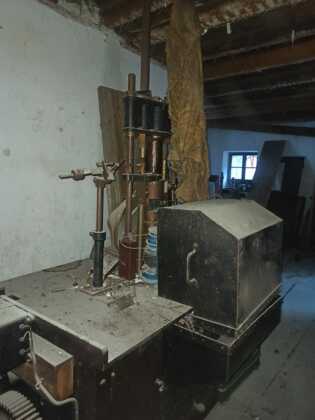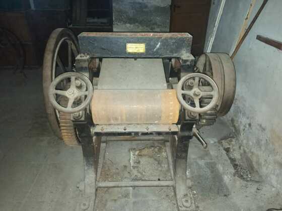 Scendiamo dalle impalcature ed entriamo nei piani inferiori. Si passa attraverso la parte dell’edificio destinata un tempo all’ufficio, al di là del quale si trova il locale con le macchine. Alcune di queste sono ultracentenarie, passate con il tempo dal funzionamento meccanico a quello elettrico.
