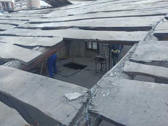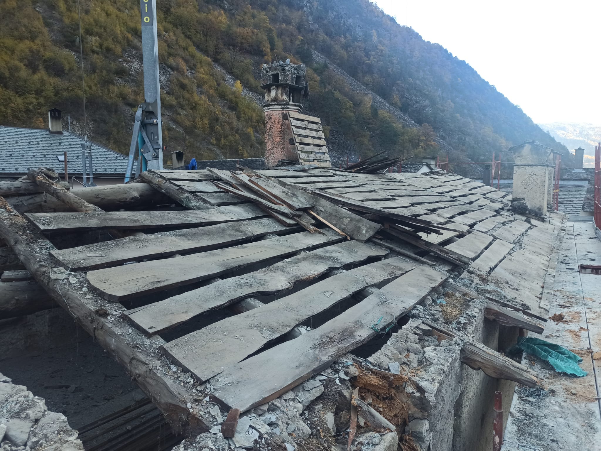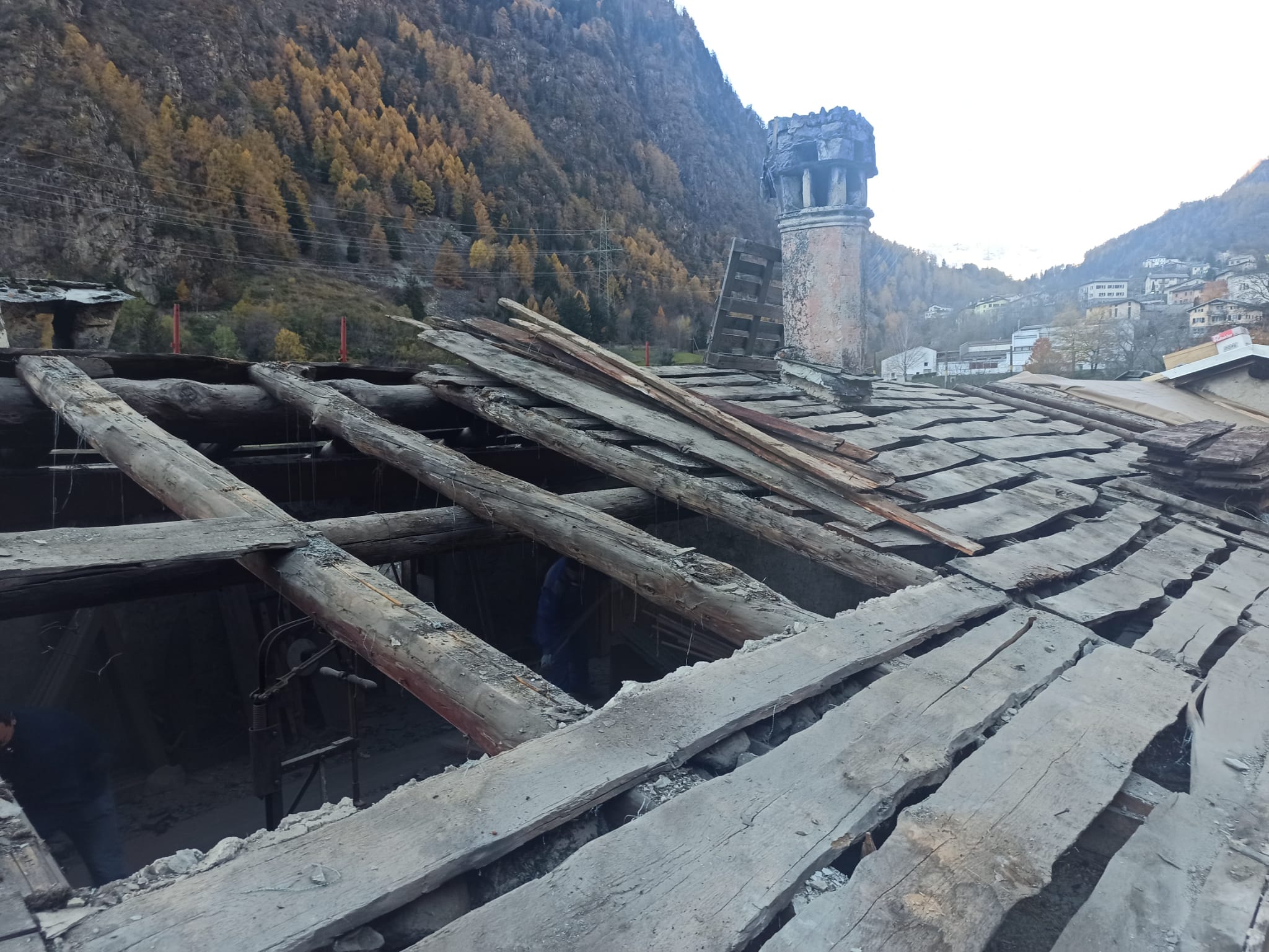 “Siete arrivati al penultimo minuto”, penso ad alta voce osservando lo stato del legname. “Al penultimo secondo… Probabilmente la copertura non sarebbe sopravvissuta ad un altro inverno” mi viene risposto.