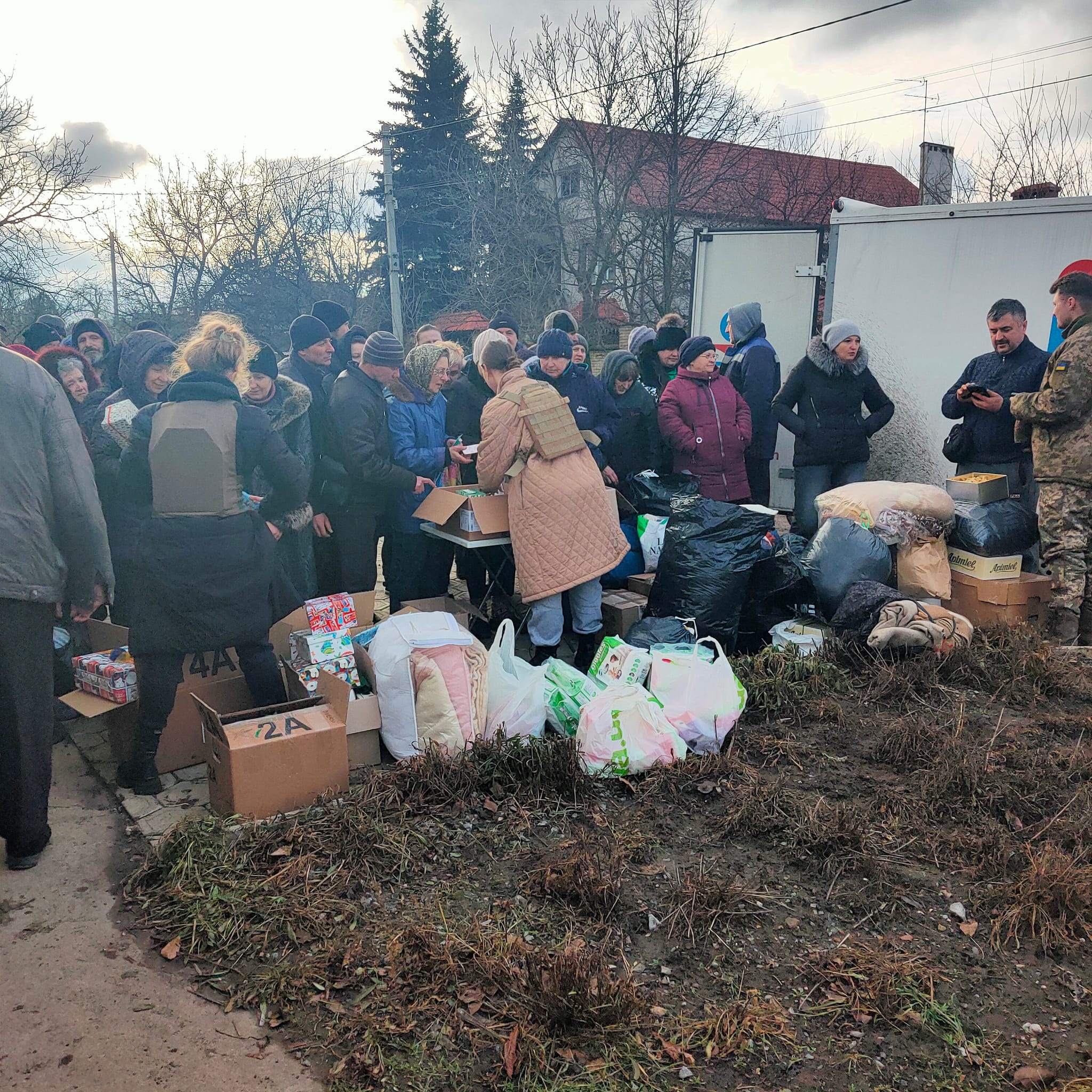 16 grandi scatole di regali per i bambini di Cherson sono subito proseguite con un furgone dell’esercito, perché come sappiamo la città è soggetta a pesanti bombardamenti da parte russa. Mentre si stavano scaricando gli aiuti è venuta a mancare la luce, grazie alla strategia terroristica russa che colpisce le centrali elettriche ucraine. Le operazioni di scarico non si sono interrotte, agevolate dai fari degli automezzi.