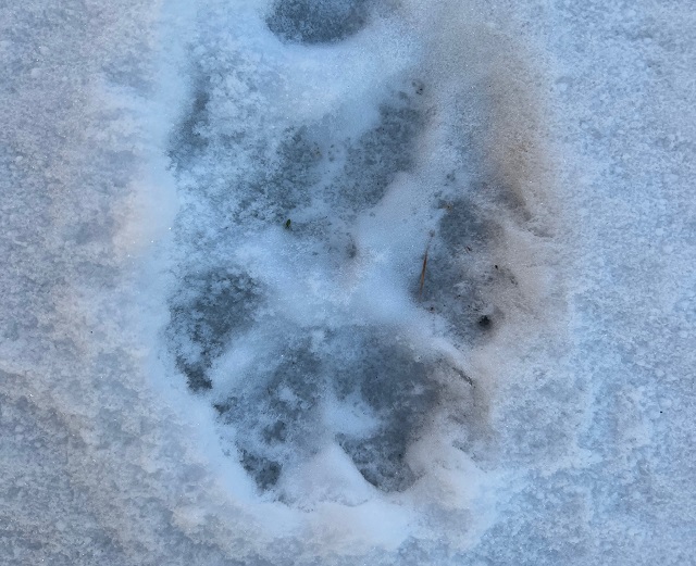 Questa mattina 16.01.2023 a Plata 1’400 s.l.m. sponda destra sopra Poschiavo, ho intercettato le probabili impronte di un lupo. Lunghezza del passo da 1m a 1.20m; probabilmente al galoppo; impronta anteriore di 12cm in lunghezza e 8cm in larghezza.
