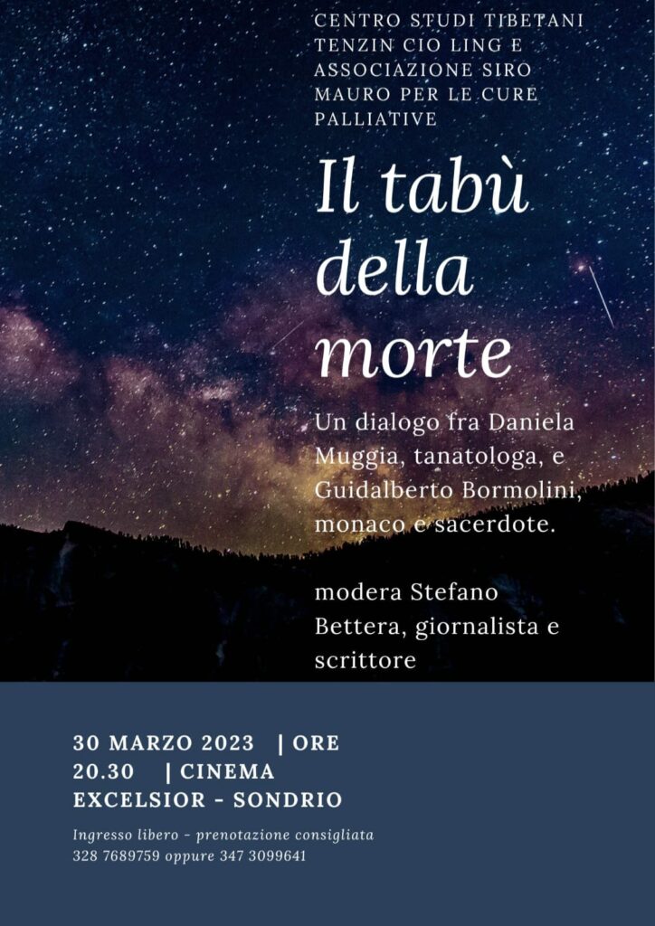 Il Centro Studi Tibetani Tenzin Cio Ling e l’Associazione Siro Mauro per le Cure Palliative in provincia di Sondrio promuovono un ciclo di incontri sul tema del vivere e del morire e sulla consapevolezza necessaria per rendere la nostra vita più significativa in ogni momento. In uno spazio a-confessionale e con l’aiuto di esperti e professionisti, saranno proposti punti di vista diversi sul tema del fine vita, molto spesso rimosso nella nostra cultura.