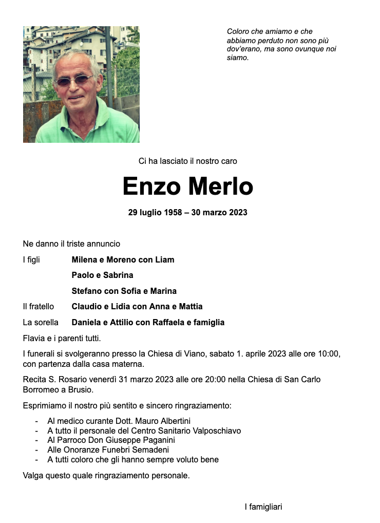 Annuncio Funebre: Enzo Merlo