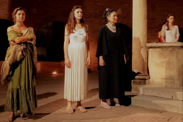 Con la figura della donna il Poeta ha rivelato veramente un mondo nuovo, esprimendo l’essenza più intensa dell’animo umano in continuo conflitto fra istinto e ragione, tra natura e legge alla ricerca di un perduto equilibrio. C’è un ansia che pervade tutta la drammaturgia di Euripide, un disperato bisogno di reperire un principio di ordine nel disordine, miseria e contraddizione delle vicende umane. Il teatro da sempre è stato specchio del tempo in cui nasce, così è per questo testo, così è per il dolore che oggi devono vivere i nostri contemporanei tra le mure sbrecciate dai colpi di mortaio, così è anche per l’assenza della profetessa, di colei che tace».