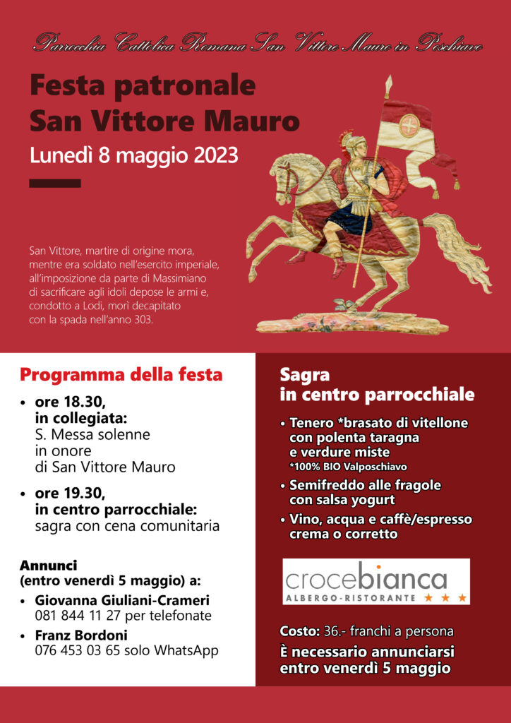 Parrocchia Cattolica San Vittore MauroCalendario Festa patronale di San Vittore Mauro Lunedì 8 maggio Di Parrocchia Cattolica San Vittore Mauro - 27 Aprile 2023 0 395