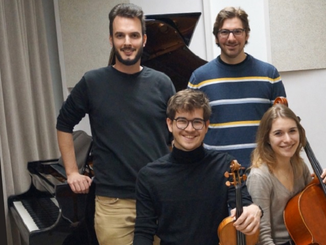 Quando nella seconda esibizione si sono aggiunti violoncello e violino, la vista è cambiata. Della violoncellista vedevo le mani prepararsi al loro lavoro. Non hanno mai tremato, si vedeva che malgrado la giovane età, la professionalità era già ben radicata. Del violino vedevo il movimento dell’archetto riflesso nel legno lucido del pianoforte, come se questo lo avesse inghiottito e fatto suo. Era un’immagine riflessa, ma lasciava intuire la conversazione intima che stava avvenendo tra lui e il compagno di suono violoncello.