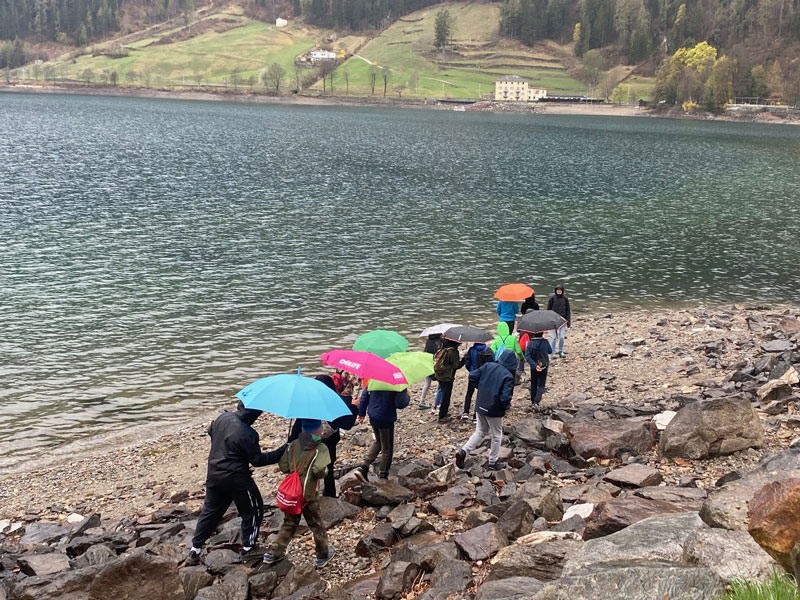 Data l’importanza della risorsa acqua, di scottante attualità, gli insegnanti hanno dapprima trattato in classe la presenza dell’acqua nella vita quotidiana e nella natura, la sua fondamentale essenzialità per la vita di tutti gli esseri viventi, l’impatto che gli interventi dell’uomo hanno sui corsi d’acqua e quali sono le azioni volte alla rivitalizzazione degli stessi. Hanno arricchito lo studio in classe le lezioni in natura sia sul lago, dove sono state osservate le opere realizzate per agevolare la risalita dei pesci nel periodo riproduttivo, tramite opportuni inviti in pietre e cemento, sia lungo il ruscello, dove si è rilevata la presenza di indicatori ecologici che attestano la conservazione, grazie anche a mirate opere umane, di un habitat equilibrato per la vita e la riproduzione della fauna ittica autoctona.