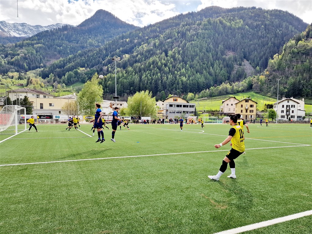 La 17^ giornata di Terza Liga ha fatto registrare il netto successo della VPC1 sotto i riflettori della televisione svizzera che ha ripreso la sfida e intervistato il tecnico Luigi Zugnoni, il capitano Luca Cristiano e il bomber Mattia Cathieni. Dopo la sconfitta dello Schluein Ilanz, i tre punti erano fondamentali e l’obbiettivo è stato centrato non senza qualche brivido. La sfida giocata ai Cortini si è aperta con il vantaggio immediato del Thusis/Cazis, ma già al riposo i gialloneri hanno rimesso le cose a posto con una doppietta di Alekos Zugnoni, primo gol su punizione e il secondo sfruttando un corner di Cathieni, e la rete di Pola. Nella ripresa a segno Mauro Crameri e ancora Zugnoni con un pallonetto. Dopo questo successo, sono 5 i punti di vantaggio sulla seconda.