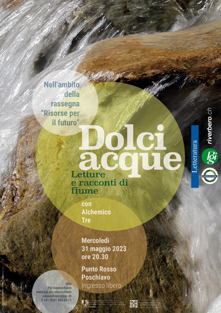 Nell’ambito della rassegna “Risorse per il futuro – Il valore dell’acqua e la coscienza dell’abitare“, la Pgi Valposchiavo e l’associazione riverbero presentano “Dolci acque” Letture e racconti di fiume, con la compagnia teatrale Alchemico Tre, mercoledì 31 maggio 2023, ore 20.30, presso il Punto Rosso di Poschiavo. “Dolci acque” è un progetto multidisciplinare, sostenuto dalla Regione Emilia Romagna, che mette al centro la creatività delle nuove generazioni, tra fotografia, grafica, scrittura e recitazione. Partendo dall’esplorazione di un fiume, in questo caso il Savio di Cesena, l’iniziativa apre alla riflessione sul tema degli ecosistemi fluviali in pericolo e sulle possibilità che abbiamo per fare qualcosa di concreto. La serata sarà condotta dall’attore Michele Di Giacomo, attore, regista e formatore della compagnia teatrale Alchemico Tre, che introdurrà l’esperienza del progetto “Dolci acque”, affiancandola a una lettura di brani da El viàz (Il viaggio) dello scrittore Tonino Guerra e altri racconti “di fiume”, con un accompagnamento musicale.