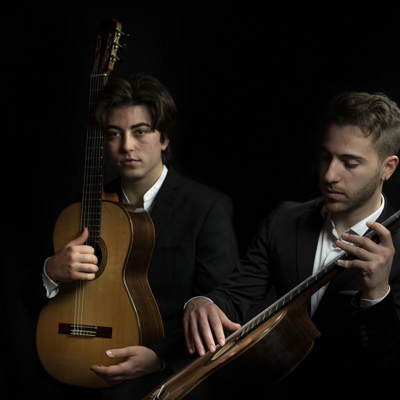 La nascita artistica del duo composto da Raffaele Putzolu (1997) e Victor Valisena (1996) risale al 2016, allorché, ancora giovanissimi, frequentano un corso di musica da camera durante il quale hanno pure occasione di studiare con Stefano Grondona. Seguono varie masterclass con artisti di fama internazionale, non da ultimo a Ponte in Valtellina. Il loro repertorio, incentrato sulla musica originale per due duo di chitarre, è stato presentato in importanti contesti. Nel gennaio 2019 hanno tenuto un concerto presso il prestigioso “Master’s Lodge” del St. John’s College di Cambridge dove ebbe modo di esibirsi anche Andrés Segovia. Altra tappa importante, il concerto andato in scena nel maggio 2021 presso il Teatro Olimpico di Vicenza. Putzolu-Valisena hanno ottenuto numerosi riconoscimenti in concorsi in campo nazionale e internazionale. Il duo ha già avuto modo di incidere un disco per l’etichetta discografica Stradivarius. Questa produzione musicale è stata recensita positivamente da importanti riviste musicali tra le quali “Il Fronimo”, “Gendai Guitar” e la rivista “MUSICA”.