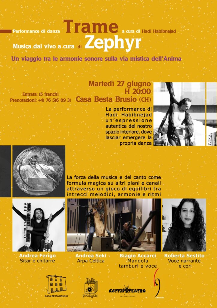 Casa Besta ospiterà la performance di danza Trame, curata da Hadi Habibnejad e accompagnata dalle musiche dal vivo del quintetto Zephyr.