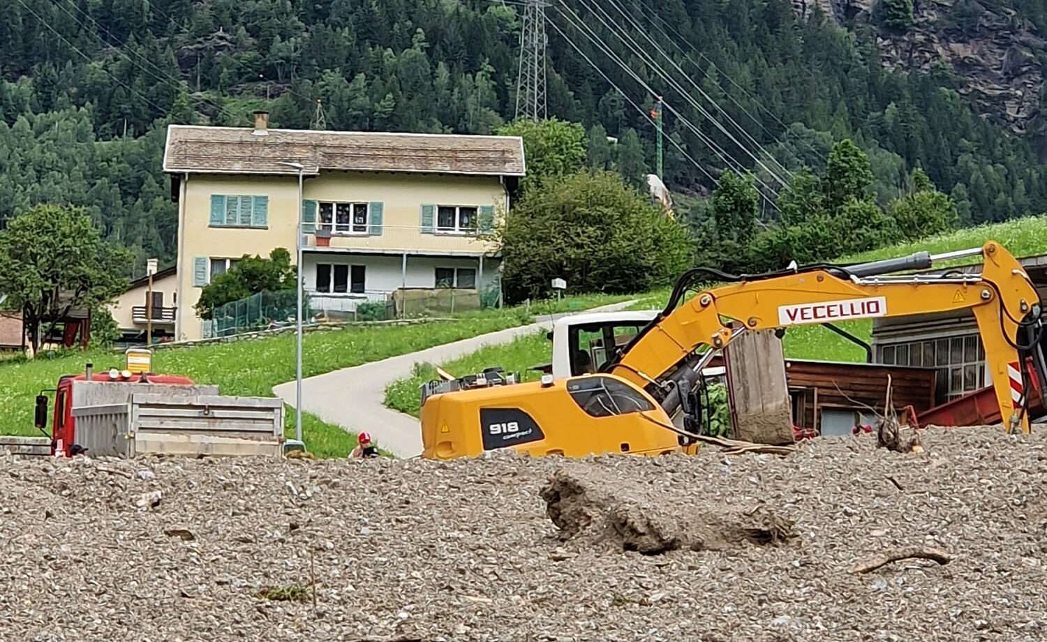 Mezzi e uomini sono la lavoro per cercare di liberare celermente il materiale sceso dalla Val Beton