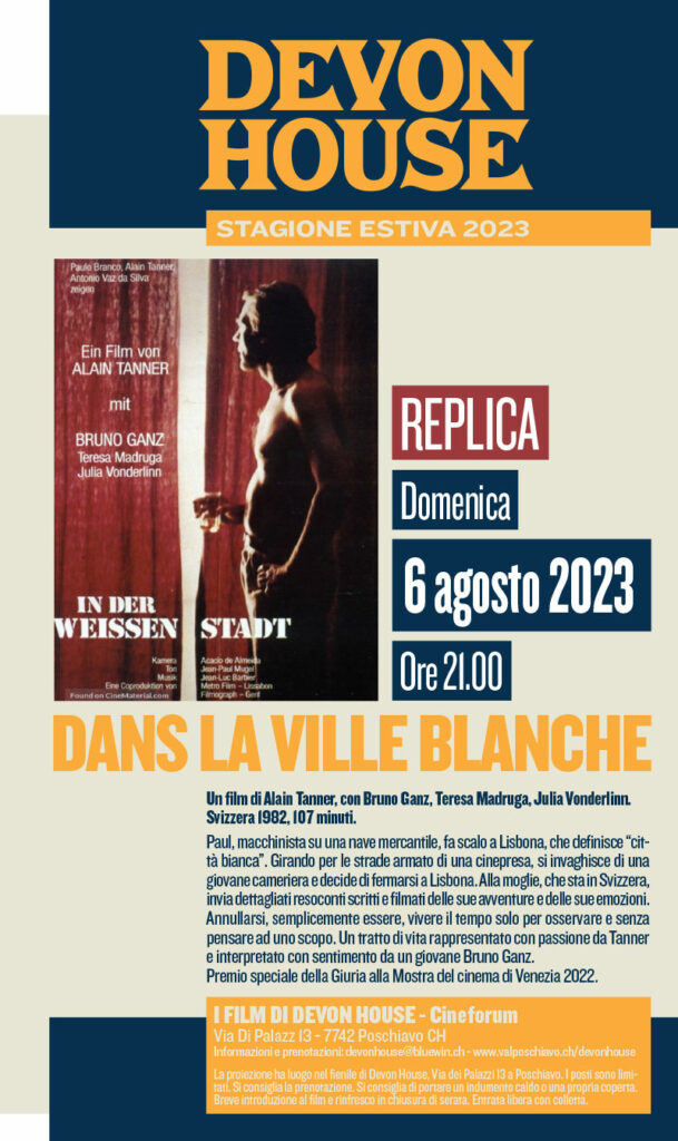 Il film, moderato in dialoghi, sarà proiettato nella versione originale (tedesco, francese e portoghese) con ST in italiano.