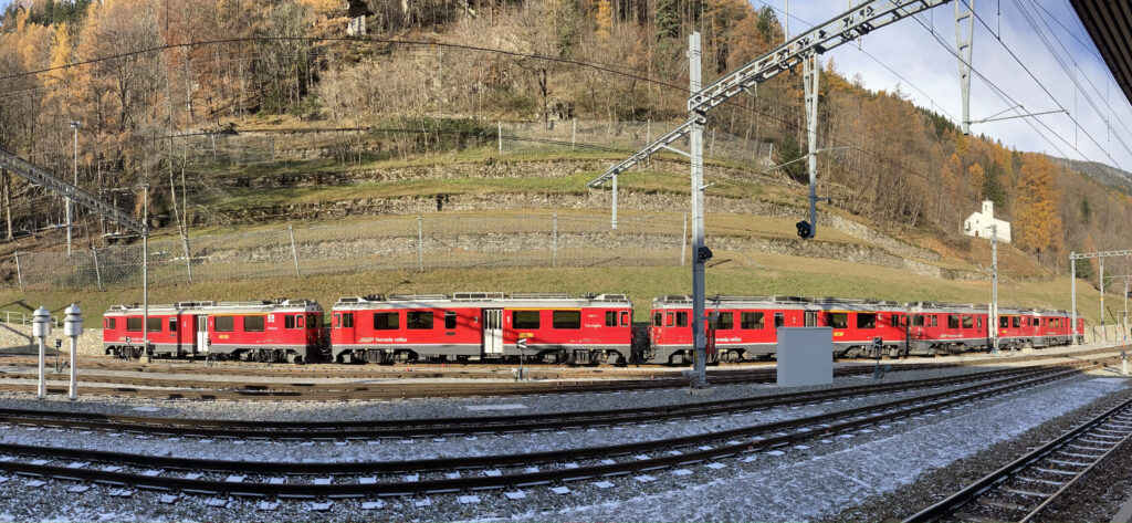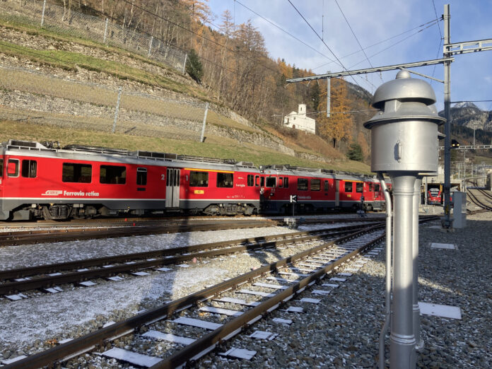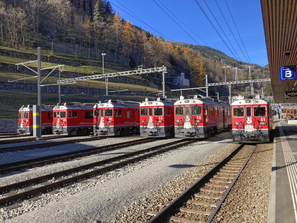 Gli scambi sono stati posizionati e le campane della stazione di Poschiavo hanno suonato per l’ultima volta in onore dei locomotori di terza generazione ABe 4/4 51-56 della Ferrovia del Bernina impiegate nei treni d’orario.