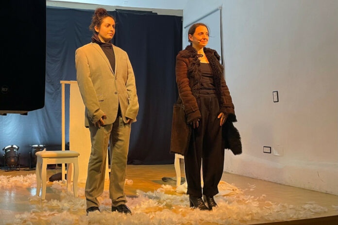 La Piccola Compagnia Dammacco ci permette di frantumare la nostra gioia romantica e ridurla in numerosi frammenti di amarezza e solitudine, tutto ciò mentre ci diverte. Si ride tanto con “Spezzato è il cuore della bellezza”. Si ride in un primo momento dei personaggi: delle uscite, di un’ironia aguzza di lei che è stata abbandonata e dell’altra, la controparte, che si lascia andare ad un’ingenua passione amorosa. Ma poi si passa dal comico all’umorismo: si passa dal ridere di loro, a ridere con loro. Sì, perché le esperienze e le passioni delle due donne, pur nella loro assurdità, sono radicate, senza il bisogno d’illudersi, nella realtà. Nel profondo, dietro la situazione comica di lei che butta l’intero appartamento nel sacco dell’immondizia pur di dimenticare l’uomo che tanto l’ha amata, o dell’altra che si abbandona ad esaudire il proprio destino, convinta di dover trovare – e di aver trovate nell’uomo – la propria anima gemella.