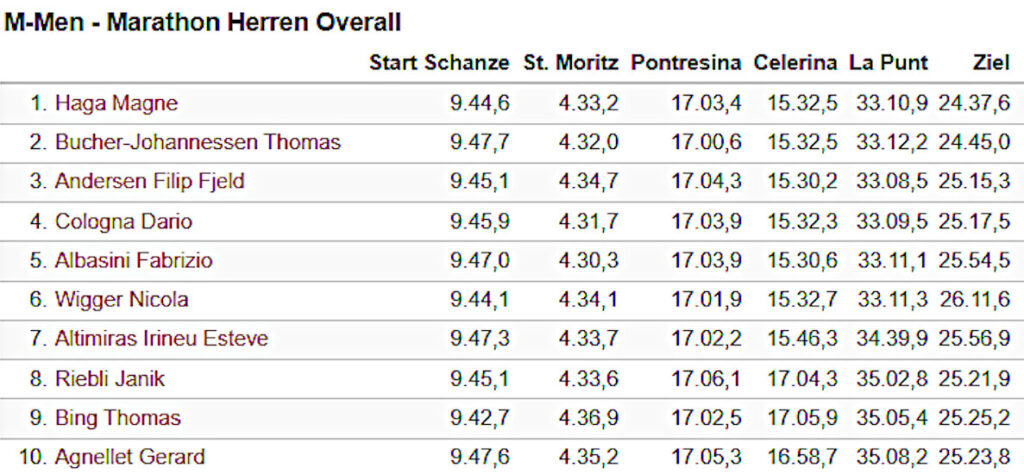 Per consultare tutte le classifiche della Maratona Engadinese 2024 clicca qui.