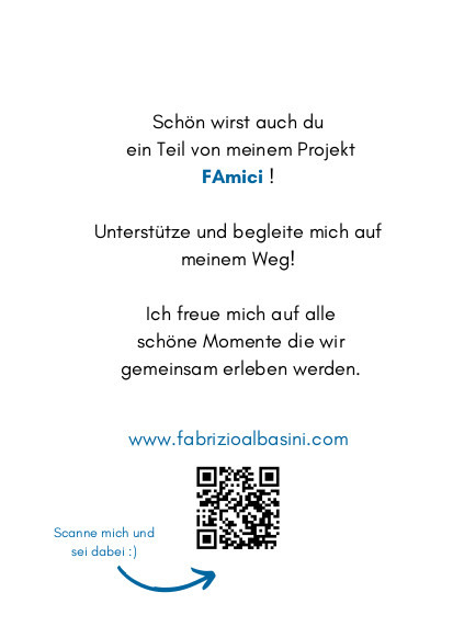 Vorrei approfittare di questa occasione per far conoscere ai vostri lettori (e non solo) il nuovo gruppo di sostegno che ho da poco creato. Si chiama “FAmici’’ ed é come un piccolo mio fan club. Se a qualcuno va di partecipare lascio qui sotto la lettera d’invito con il codice QR per iscriversi (clicca qui).