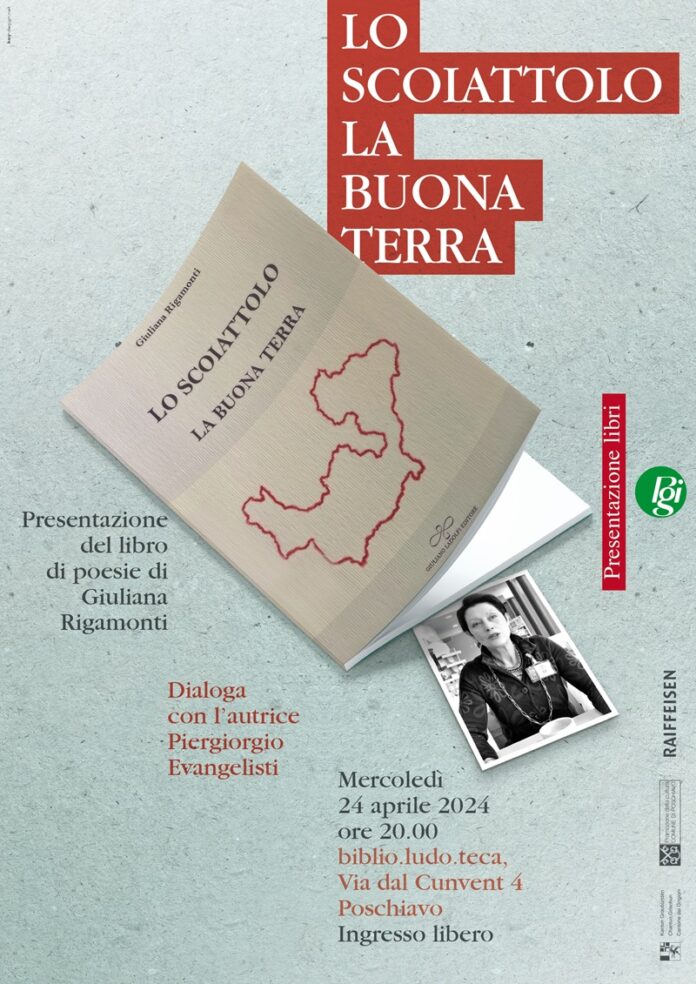 Non poteva che rientrare nella ricca programmazione di sConfini, Festival del Contrabbando culturale, la collaborazione tra la Pro Grigioni italiano Valposchiavo e Valposchiavo Turismo, con la presentazione della raccolta di poesie in tre atti, “Lo scoiattolo La buona terra”, di Giuliana Rigamonti (egittologa di fama internazionale, ma valtellinese nelle origini e nel cuore), mercoledì 24 aprile, alle ore 20.00, presso la biblio.ludo.teca di Poschiavo.