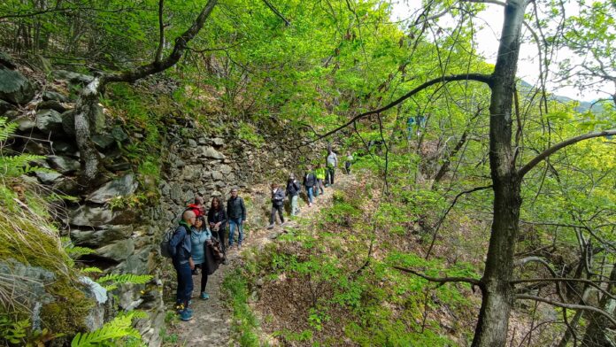 L’escursione, che ha permesso di godere della bella vista sui vigneti e sulla vallata, si è conclusa nella piazzetta di Roncaiola con un pranzo al sacco offerto e l’esibizione di Manoucherie, che ha allietato i partecipanti con brani jazz evocativi, riportandoli indietro nel tempo ai giorni del contrabbando, anche attraverso la musica.