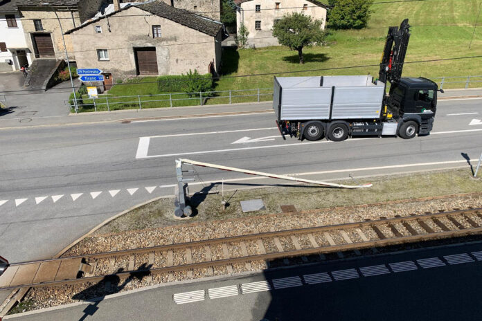 Questa mattina intorno alle 9.25 un camion che transitava attraverso il passaggio a livello di Li Curt con la gru troppo alta sul rimorchio, ha agganciato i fili e le barriere della ferrovia e li ha divelti.