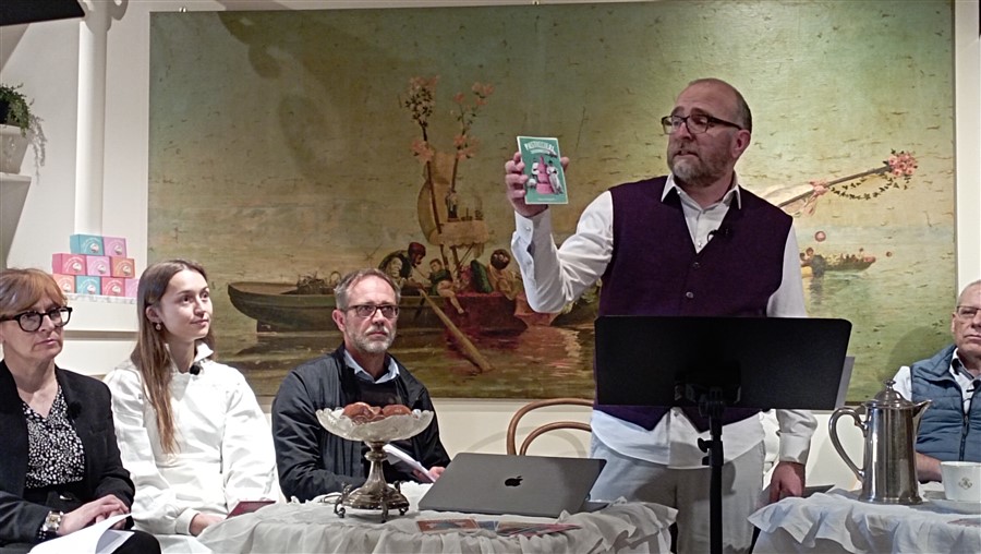 Daniele Papacella, curatore della mostra, ha approfondito il ruolo dei pasticceri valposchiavini nella storia. Ha evidenziato come questi artigiani siano stati dei veri pionieri rispetto agli altri grigionesi, contribuendo significativamente allo sviluppo culturale, architettonico ed economico della Valle. Senza i pasticceri, Poschiavo non avrebbe la stessa ricchezza culturale e la stessa bellezza dei suoi palazzi storici. Daniele Papacella ha anche sottolineato l’importanza dell’utilizzo di materie prime importate dalle colonie di altri paesi, come lo zucchero, il cacao ed il caffè, che hanno reso i Grigioni partecipi di dinamiche globali. Nondimeno dell’utilizzo di innovazioni tecniche dell’epoca, come la cucina economica, che ha rivoluzionato la pasticceria consentendo di cucinare senza fumo di combustione e utilizzando un terzo della legna rispetto a una cucina più vecchia.