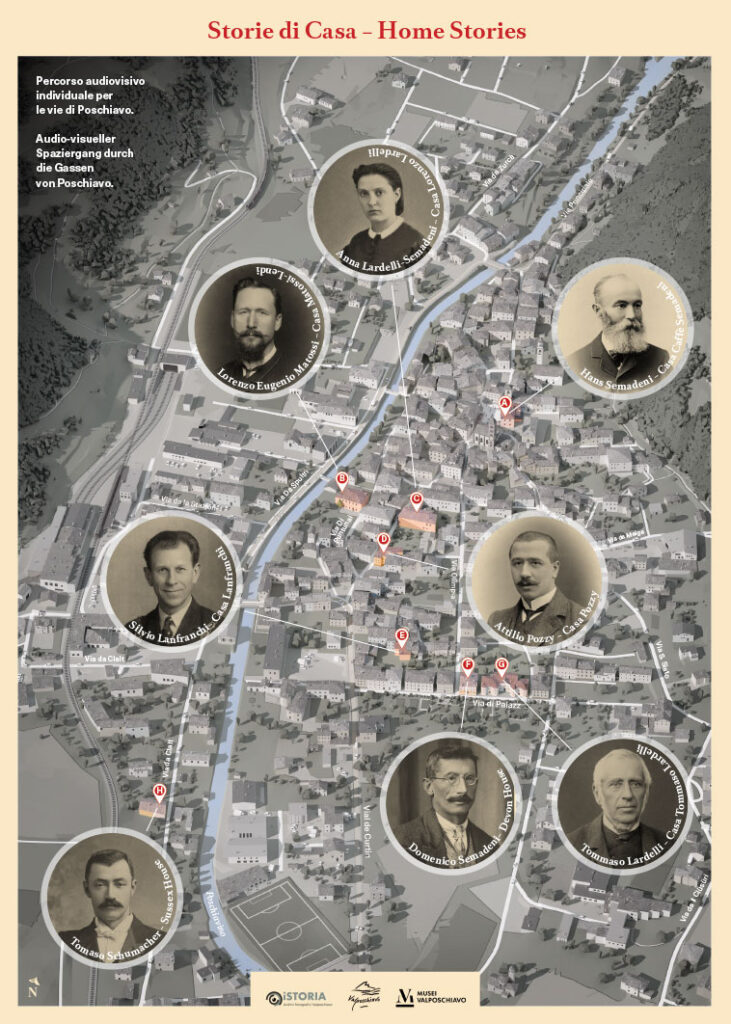 Questo innovativo progetto, realizzato da “iSTORIA – Archivi fotografici Valposchiavo” in collaborazione con Valposchiavo Turismo, propone filmati che raccontano le storie di personaggi legati all’emigrazione dei pasticcieri poschiavini partendo dalle case del Borgo in cui hanno abitato.