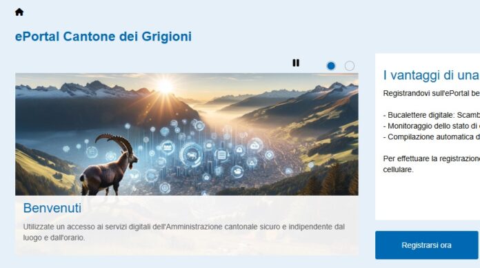 “È una piattaforma di base e ora cominciamo a svilupparla passo per passo”, ha spiegato il consigliere di Stato Martin Bühler alla trasmissione radiofonica della RSI “Grigioni sera”. L’ePortal, reperibile all’indirizzo eportal.gr.ch, permette di effettuare in modo semplice e sicuro servizi quali notificare un trasloco o chiedere una proroga per il termine d’invio della dichiarazione d’imposta, si legge in una nota del Cantone.