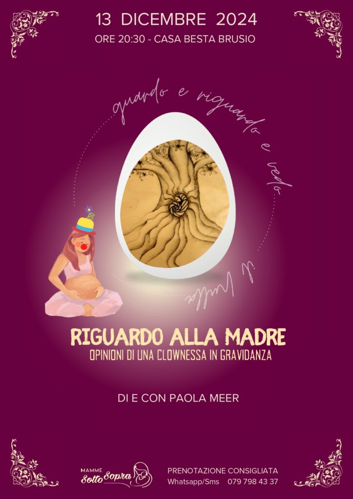 Venerdì 13 dicembre alle ore 20:30, in Casa Besta a Brusio, andrà in scena RIGUARDO ALLA MADRE, opinioni di una Clownessa in gravidanza