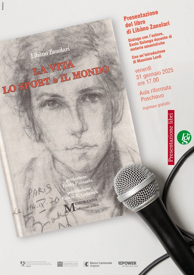 Libàno Zanolari, “La vita lo sport il mondo” – Venerdí 31 gennaio 2025, ore 17.00 – Aula riformata, Poschiavo. Introduce Massimo Lardi. Presenta il volume e dialoga con l’autore Ennio Emanuele Galanga.