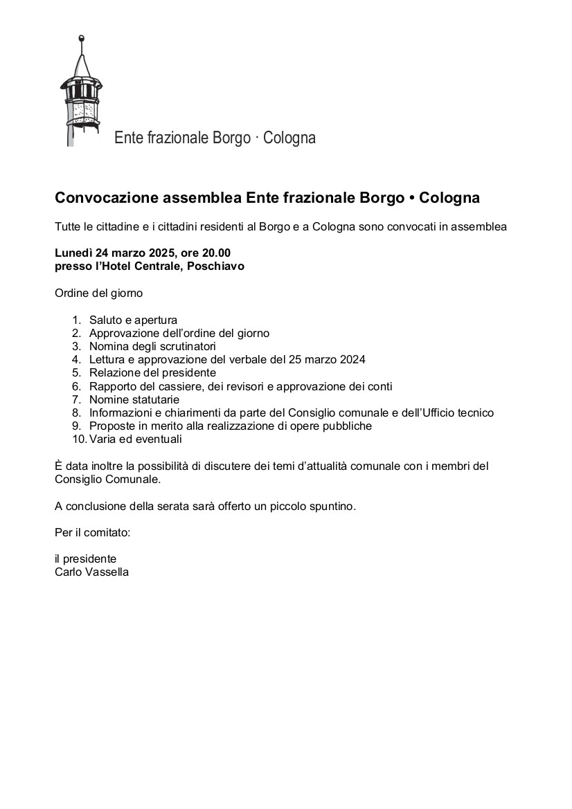 Convocazione assemblea Ente frazionale Borgo • Cologna