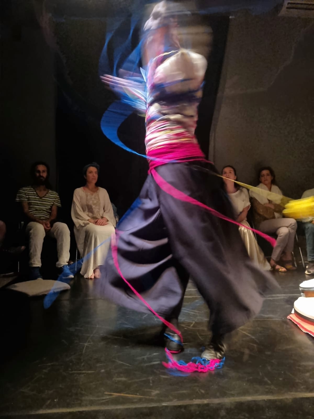 Già ospite della Festa danzante Poschiavo negli anni 2016 e 2022 con un corso di danza orientale contemporanea, in Trame Hadi Habidnejad vuole mettere in luce il ruolo dell’anima nello spazio abitato, a partire dal corpo – un corpo condizionato dalla realtà moderna – per arrivare all’espressione autentica del nostro spazio interiore, dove lasciar emergere la propria danza. Durante lo spettacolo, fili colorati attraverseranno lo spazio scenico posizionandosi nei quattro lati; come espressione della filosofia del Sufismo, rappresentando i quattro elementi della natura, fino a contemplare il quinto elemento: lo stato d’animo umano. Il danzatore Sufi, ruotando dentro i fili, si muoverà tra gli elementi.