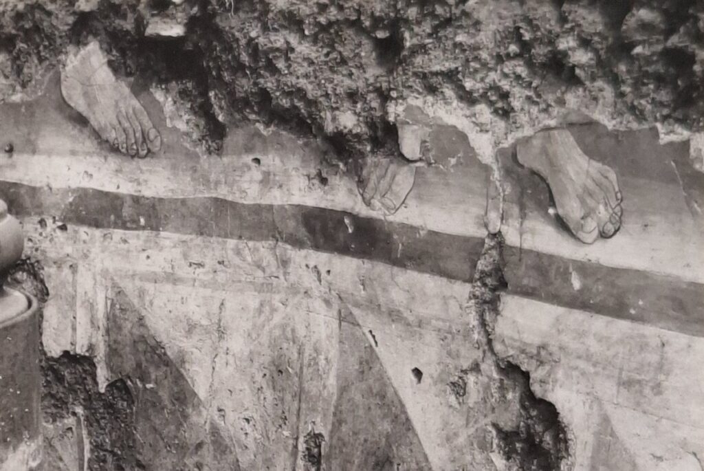 “L’ingegnere di circondario mi promise che avrebbe impedito l’ulteriore distruzione delle parti di muro [dell’antica chiesa, ndr.] sui quali si trovano degli affreschi”, aggiunse Planta nelle sue note. Prima di rientrare oltre Bernina, l’archeologo fece delle misurazioni e alcuni schizzi che riportò su di un foglio millimetrato.