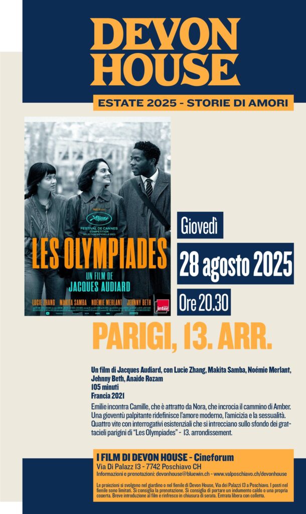 La proiezione avrà luogo nel fienile di Devon House. I posti sono limitati a 55. Consigliamo quindi di prenotare con un email a: devonhouse@bluewin.ch