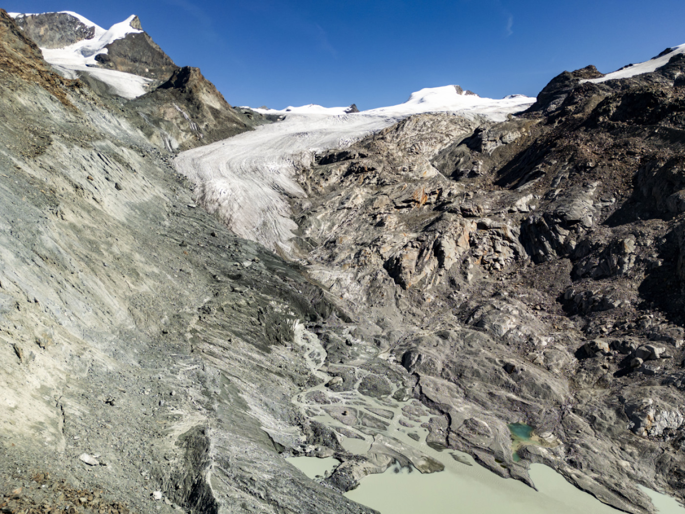 Il ghiacciaio del Findelen (VS) e il lago formatosi dal suo scioglimento.