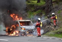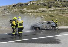 Auto distrutta dalle fiamme al Passo del Bernina