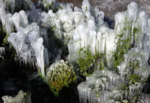 Sculture di ghiaccio fotografate il 21 aprile a Brusio-Golbia