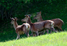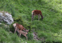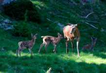 Cervi, due mamme con i propri cerbiatti