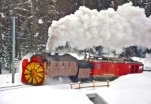 Oggi, domenica 22 gennaio 2017, lo spazzaneve rotativo a vapore della Ferrovia del Bernina Xrot d 9213, costruito nel 1910, si presenta al pubblico in...