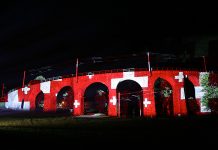 Il viadotto elicoidale della ferrovia del Bernina a Brusio illuminato dall'artista della luce Gerry Hofstetter in occasione della Giornata internazionale del rifugiato del 2006.
